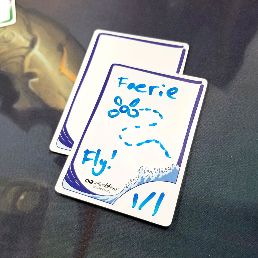 InfiniTokens are customizable, reusable double-sided dry erase cards for trading and collectible card games such as Magic: The Gathering. Carry thousands of token options in one small handful of cards! Being prepared for anything has never been so easy. Can't draw? No problem, just use words.